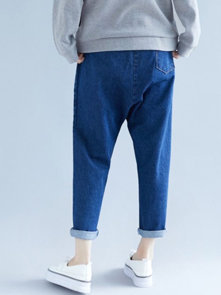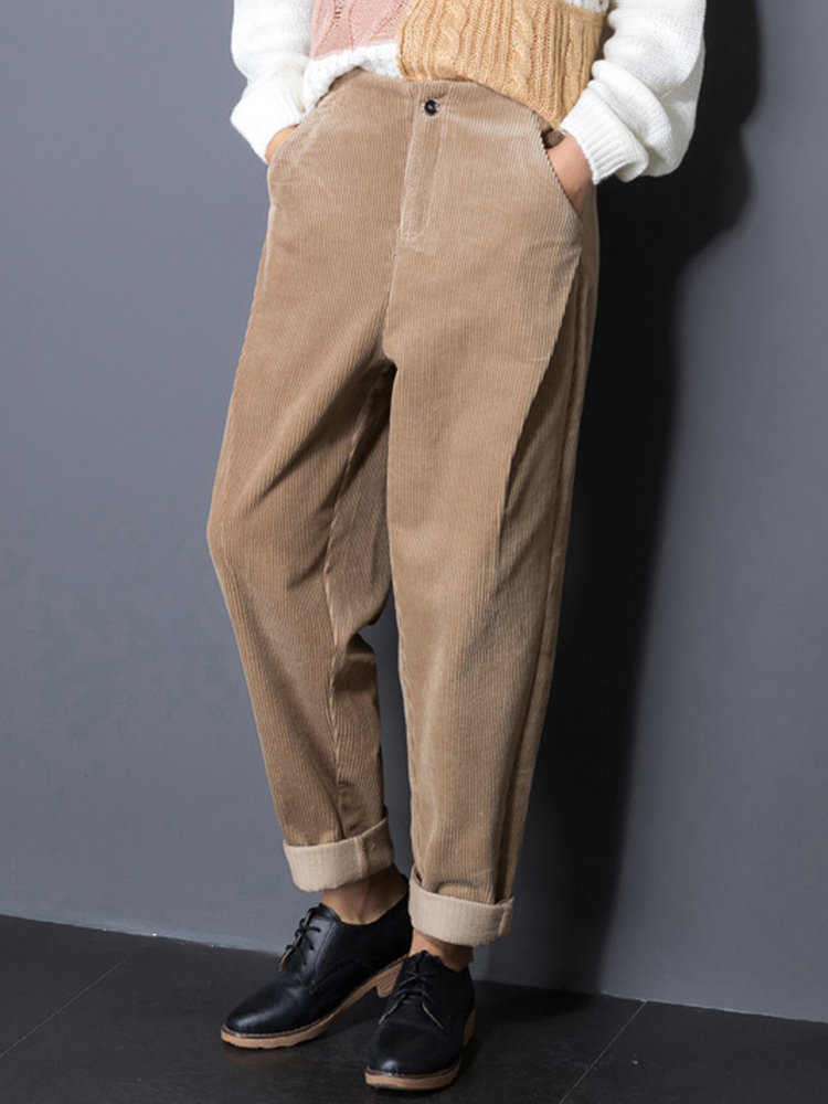 Buttons Stripe Elastic Waist Pockets Casual Harem Pants